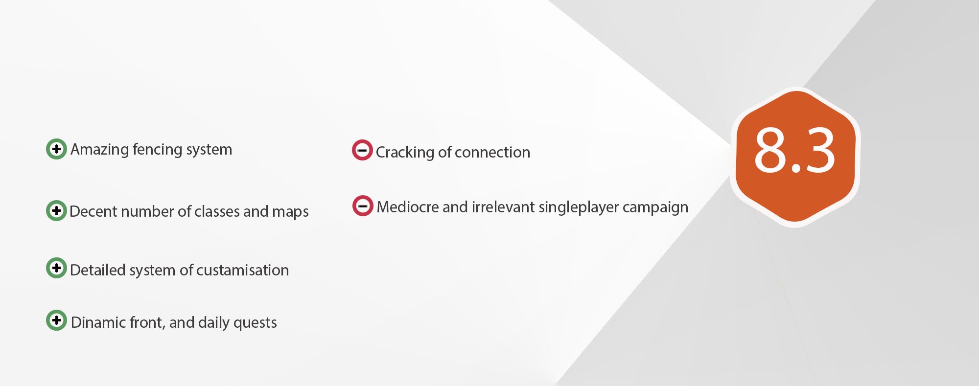 Playable modes also may not be something too unique not wide, but still cover all the basics that the player could wish for. Classic Deathmatch, Duel, point capture and last man standing give enough choices that everyone here can find their place, at least to start. The rounds that last two weeks, and seasons, and for up to ten weeks, we are left to see how the war will continue to develop. We know only that the fate For Honor ultimately depends on Ubisofts subsequent support with additional content that should prevent the game quickly getting rusty.