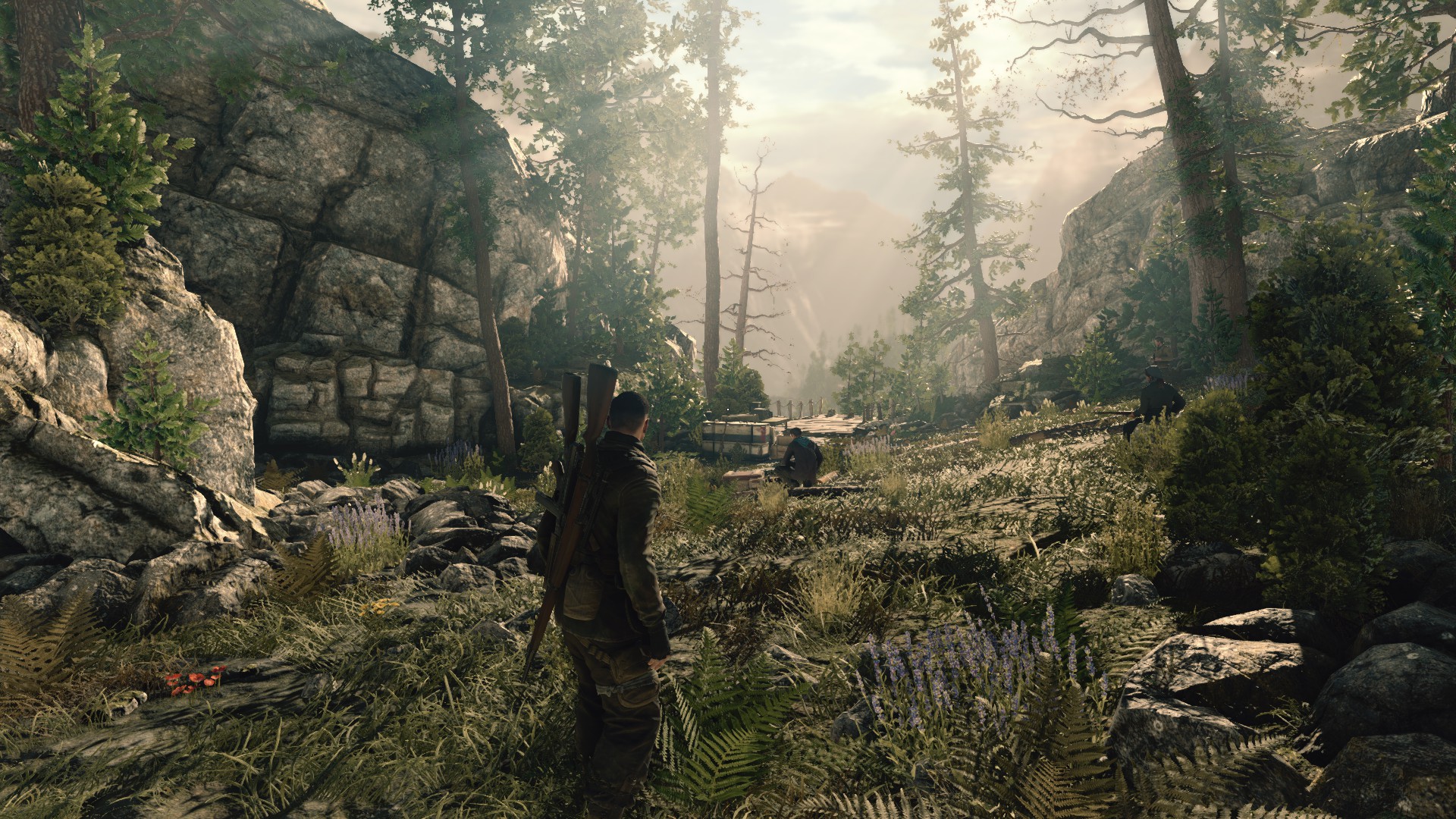 The enemies in Sniper Elite 4 never behave like some kind of unit, team, squad, call it what you will. They are individual sets of scripts scattered throughout the map. Locate you through a very simple method of detection that can be easily exploited, and when you need to squeeze into a corner act like drunken fools.